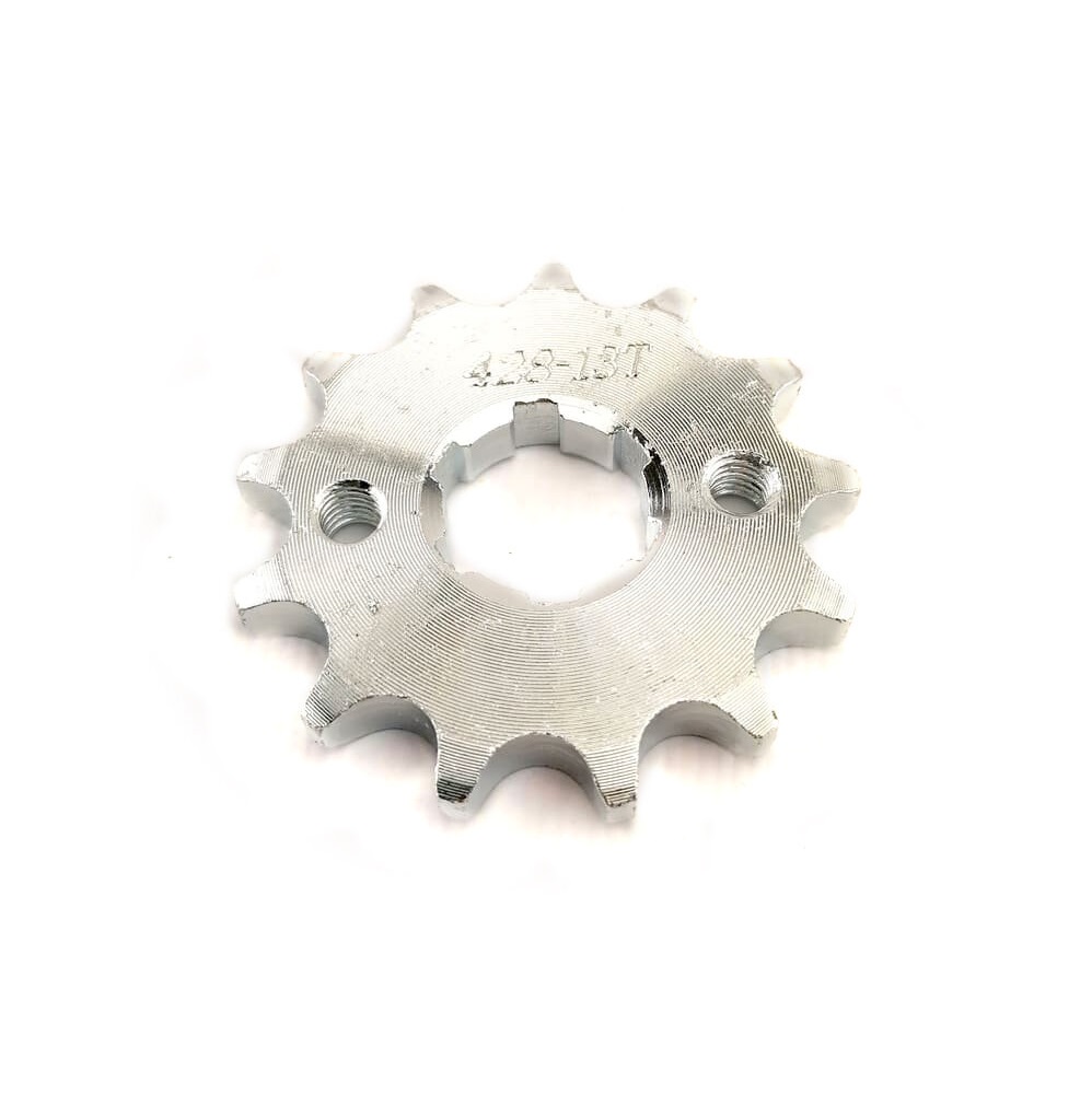 Звезда ведущая под 428 цепь. Подходит на валы двигателей питбайков и мотоциклов c диаметром вала ведущей звезды 20,00 мм. Количество отверстий под крепление - 2, с растоянием между центрами крепежных отверстий - 34,00 мм. Число зубьев звезды - 13. Внешний диаметр звезды 55,00 мм. Толщина звезды - 7,00 мм. Материал - сталь.
